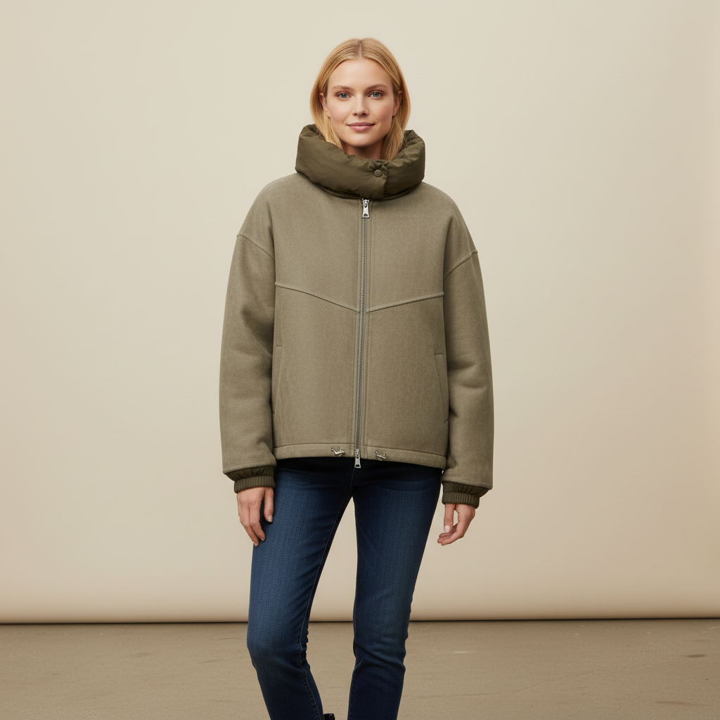 Embrace both style and comfort with this trendy olive green oversized zip-up jacket. Crafted from soft, high-quality fabric, it provides warmth and a relaxed fit, perfect for colder days. The modern design features a cozy, adjustable hood and ribbed cuffs for extra snugness. With its versatile style and effortless zip closure, this jacket is perfect for layering over casual or sporty outfits. A must-have addition to any wardrobe, it combines practicality with fashion-forward appeal.
